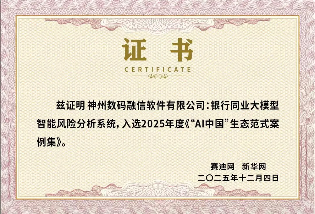 赛迪网在论坛上正式公布《“AI中国”生态范式集(2025)》和《“AI中国”生态图谱(2025)》两项重要成果。神州信息银行同业大模型智能风险分析系统入选《“AI中国”生态范式集(2025)》。